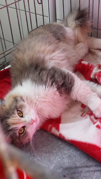 Wir suchen nun ein FÜR IMMER Zuhause, mit anderen Katzen müssten wir testen.