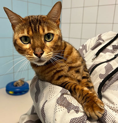 Dieser charmante Kater ist kastriert und befindet sich derzeit in einem Tierheim, wo er auf eine Familie wartet. Er hat ein auffälliges, leopardenähnliches Fell, das typisch für die Bengal-Rasse ist und strahlende Augen , die sein freundliches Wesen widerspiegeln. Er ist sehr verschmust und liebt die Gesellschaft von Menschen. Seine sanfte und liebevolle Natur macht ihn zum perfekten Begleiter. BITTE BEACHTEN SIE dass er der einzige Vierbeiner in seinem Zuhause sein möchte. Er kommt nicht gut mit anderen Katzen oder Hunden aus.