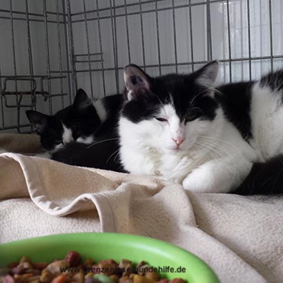 Baly (die mit mehr weiss im Gesicht) wurde vermittelt, nun wartet Maly auf ein schönes Zuhause, gerne bei anderen Katzen.