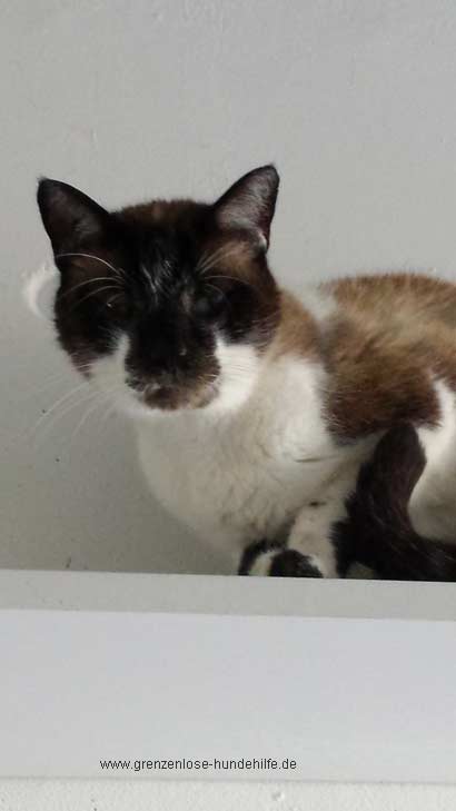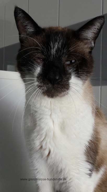 Ein Auge ist trüb, warum wissen wir leider nicht, aber was wir wissen ist das er ein ganz lieber ruhiger schmusebedürftiger TRAUMKATER ist und ich kann einfach nur schwärmen.
