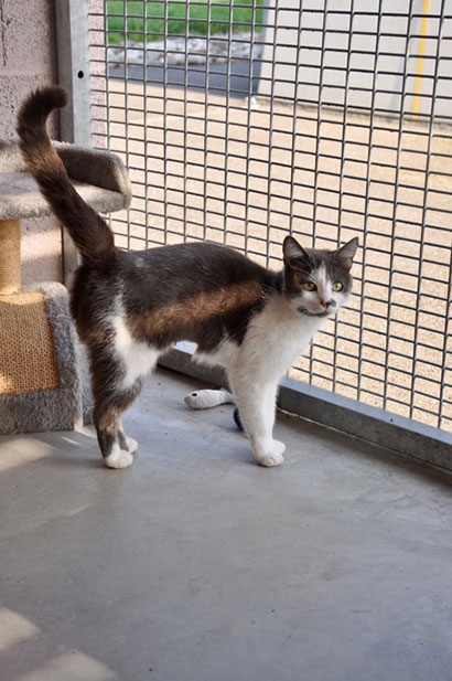 Mittlerweile hat sie ich an den Tierheimalltag gewöhnt und fängt nun an die anderen Katzen zu „tyrannisieren“.