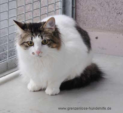 Er ist offen zu anderen Katzen und es wäre toll, wenn er zu einem sozialen, souveränen und verspielten Artgenossen ziehen könnte.