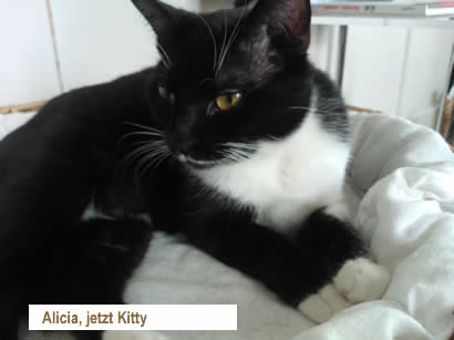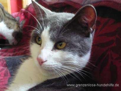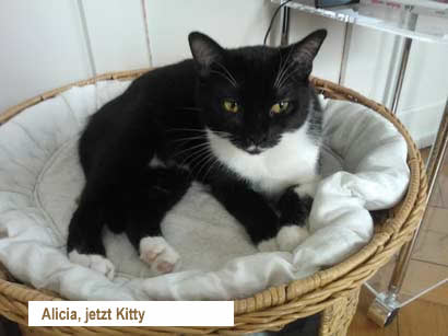 Kitty ist eine zarte Katzendame, sie hat ein ruhiges, liebes Wesen, sie brauchte einige Zeit um sich bei mir einzugewöhnen, sie lässt sich gerne auf den Arm nehmen um etwas zu kuscheln, wenn man sich bückt springt sie gelegentlich auf den Rücken und legt sich um den Hals. Sie schläft im Bett gerne am Fussende.