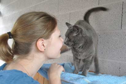 Er gibt Küsschen und Köpfchen und geniesst die Zuwendung. |