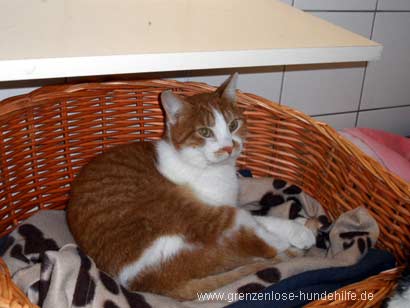 In seinem neuen Zuhause sollte eine weitere Katze sein, nach Möglichkeit ein Kater da er diese zu bevorzugen scheint und auch mit Ihnen kuschelt. |