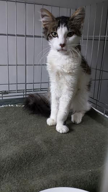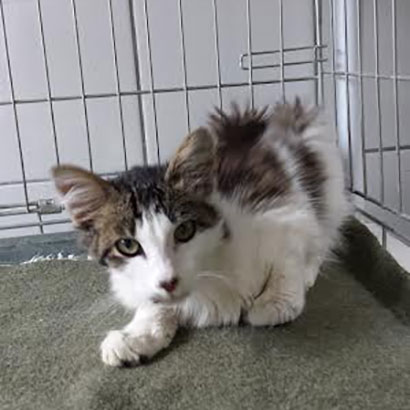 Capucin ist in einem schlechten Zustand und ausgetrocknet. Er befindet sich derzeit in der Tierklinik.