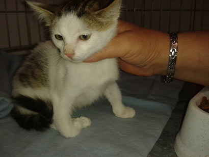 Capucine hat ein verbogenes Beinchen und konnte auf eine PS ziehen, sie wurde dem Tierarzt vorgestellt.