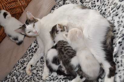 Celine zieht gerade noch sehr liebevoll ihre 5 Babies auf der Pflegestelle auf. Obwohl sie selbst sehr dünn und stark mitgenommen ist von der Trächtigkeit und Aufzucht; kümmert sich ganz toll um ihre 5 Racker; sie ist eine selbstlose und bewundernswerte Katzenmama. Wenn ihre Babies ab Mitte November 12 Wochen alt sind und in ihr neues Zuhause ziehen könnten, ist es auch Zeit für Celine und eine eigene Familie.