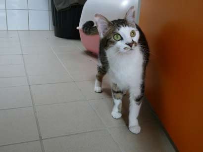 Chaton hat ein so offenes, freundliches Wesen. Sobald man den Raum betritt ist sie zur Stelle, ist an allem interessiert, möchte schmusen und gestreichelt werden. |