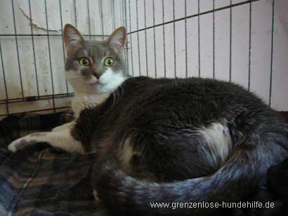 | Claire ist ca. 3 Jahre alt und wurde gefunden. Sie ist eine sehr grosse Kätzin und etwas schüchtern. Sie schmust und schmust ... einfach herzig. Andere Katzen beäugt Sie neugierig, aber nicht aggressiv. Claire ist ein Herzchen und sucht dringend ein Zuhause bei lieben Menschen. |