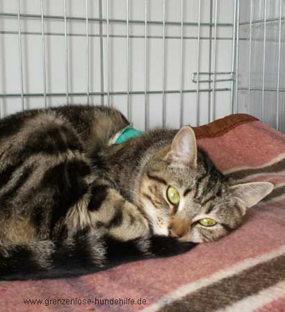 Glücklicherweise wurde das Tierheim informiert und Clelia in die Tierklinik gebracht, sie hat sich den Kiefer angebrochen und soll sich auch an der Schulter verletzt haben.