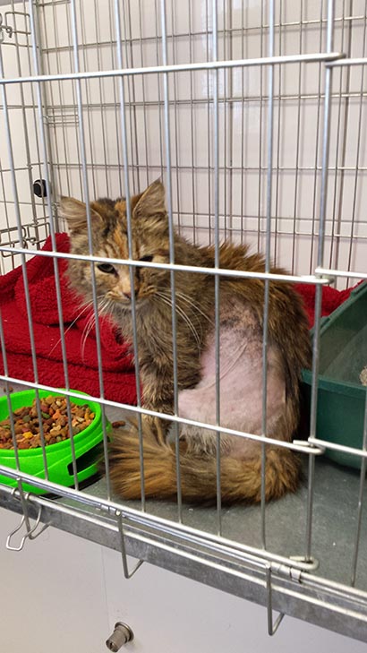 Das Fell war komplett verfilzt und musste geschoren werden.