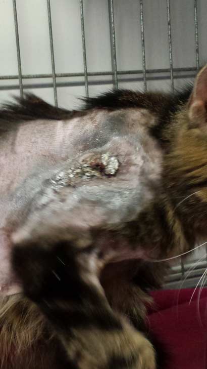 Er wurde sofort in die Tierklinik gebracht, die Wunden wurden gereinigt und vernäht.