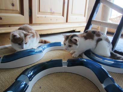 Die beiden sollten zusammenbleiben. Sie lieben es miteinander zu spielen und zu toben, sind also ganz aktive Kätzchen.