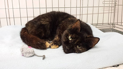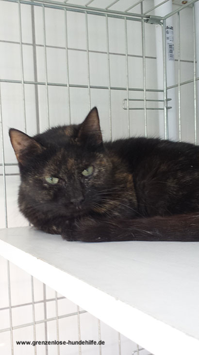 Da sie nur Spezialfutter fressen darf musste sie wieder in einen Käfig, was sie aber nicht schlecht findet da sie andere Katzen sowieso nicht mag.