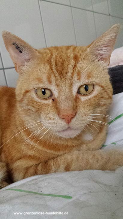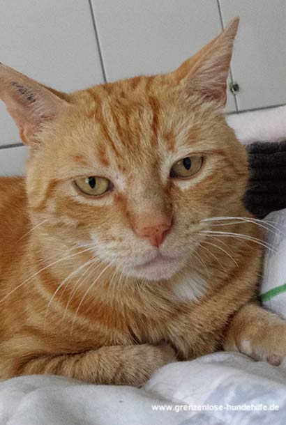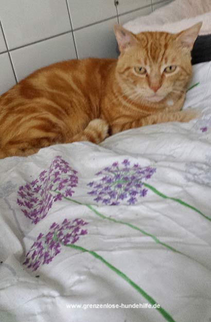 Die anderen Katzen toleriert er, könnte aber auch einzeln in ein Zuhause. |