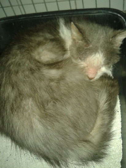 Er befindet sich momentan noch in der Tierklinik da er bereits zweimal eine Schnupfeninfektion hatte, diese ist nun am abklingen und wir suchen händeringend nach einem geeigneten Pflegeplatz wo er bleiben kann.
