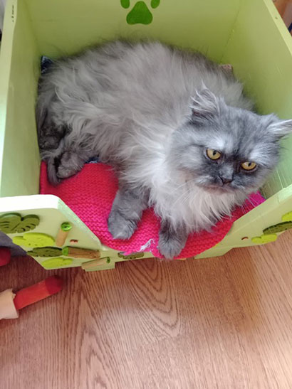 Die beiden Perser(Mix) Damen Era und Athena wurden in einem Karton vor der Tür des Tierheims abgestellt.