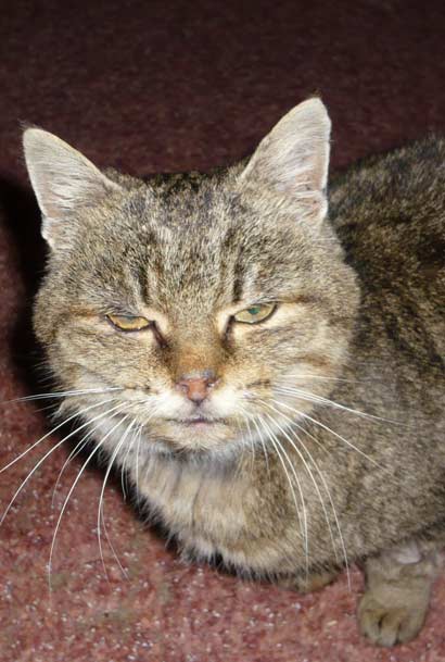 Fee ist wie die anderen FIV positiven Katzen auf dem kalten Speicher im SPA untergebracht.