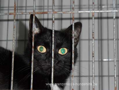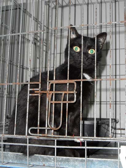 Sie ist aufgeweckt, sozial mit anderen Katzen und versucht mit ihren Tätzchen durchs Gitter zu kommen.