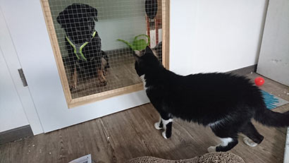 Inzwischen durfte er auch aus seiner Box raus und das Zimmer bewohnen.