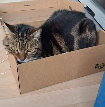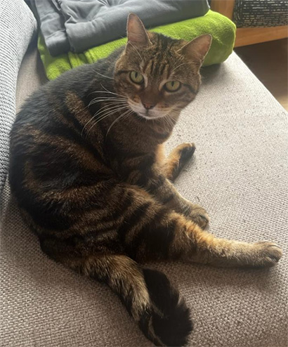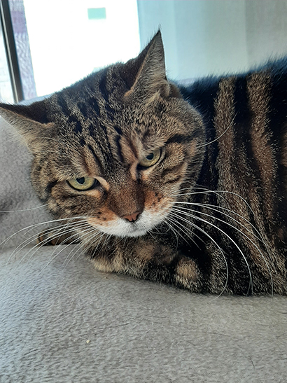 Vermittelt hatten wir eine 7 kg etwas propere, zugängliche Katze. Zurück kam eine adipöse Katze mit 11 kg, welche im Moment aggressiv auf Annäherungen reagiert.
