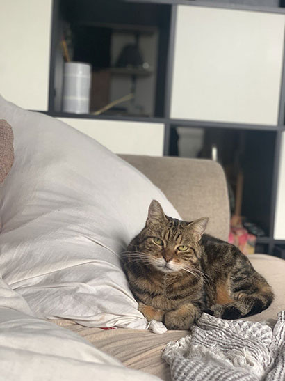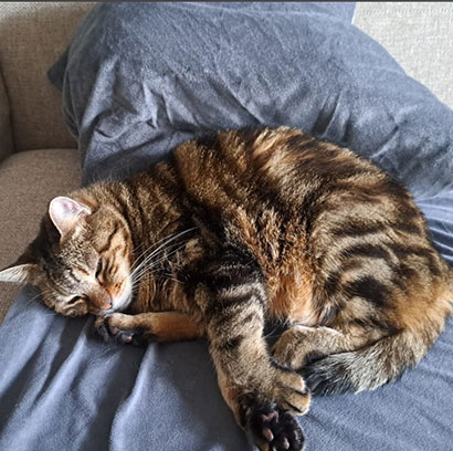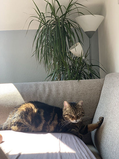 Am liebsten lümmelt sie auf der Couch oder dem Schreibtischstuhl und schläft.
