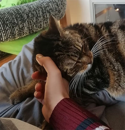Sie ist immer noch ängstlich, aber kein Vergleich zum Einzug. Inzwischen fordert Sie bei Bedarf ihre Streicheleinheiten lauthals ein.