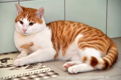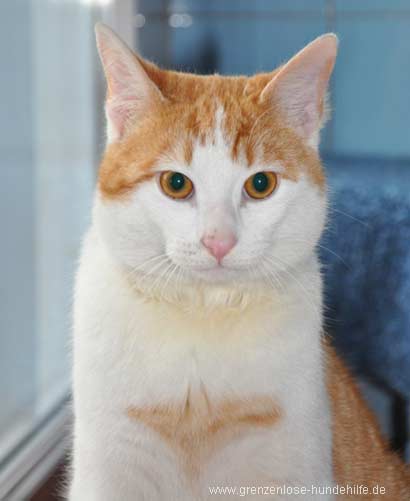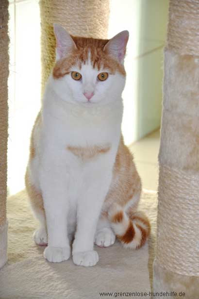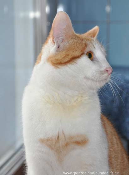 Der hübsche Kater Figaro ist ein ganz imposanter Kerl. Er ist absolut unkompliziert, verträglich und lieb. Sein rot-weißes Fell glänzt wunderschön und ist samtig weich.