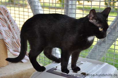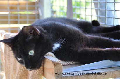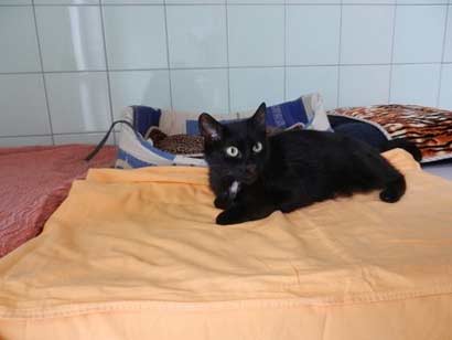 | Finess wurde gefunden. Die süße Finess ist ein liebes, verschmustes Katzenmädchen, dass die Nähe des Menschen sucht. Sie ist noch überfordert so viele fremden Katzen um sich herum zu haben. |