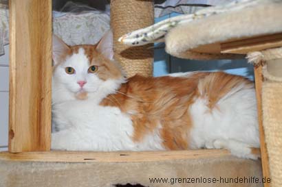 Fonzy, ist ein lieber und verträglicher Jungkater mit bernsteinfarbenen Augen die genau die gleiche Farbe haben wie das rot in seinem Fell.
