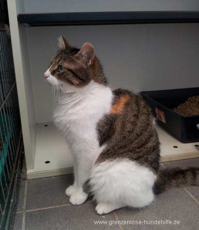 Foupi ist ca. 6 Jahre alt und kann gerne zu anderen Katzen vermittelt werden. |