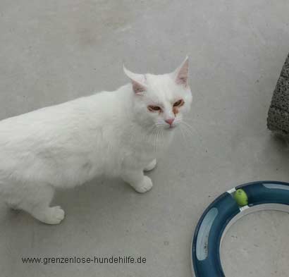 Um die Augen sollte im neuen Zuhause mit einem weichen Patt immer mal sauber gemacht werden, es scheint bei weißen Katzen da eine Empfindlichkeit zu geben.