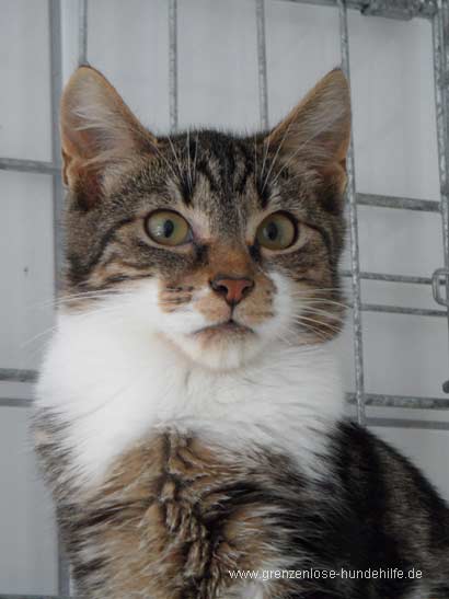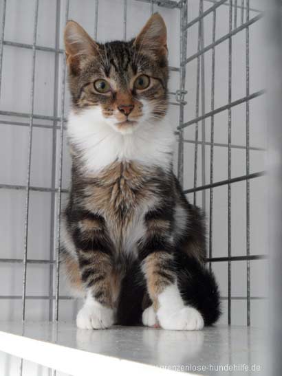 Zu anderen Katzen hingegen ist er sozial. Er kann nur in Wohnungshaltung vermittelt werden.