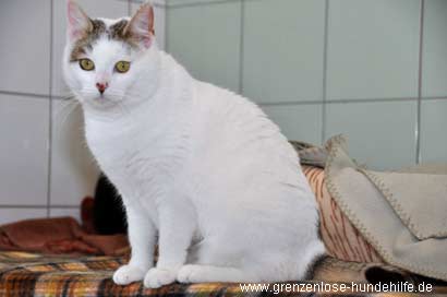 Die hübsche Kätzin hat wunderschöne bernsteinfarbene Augen und Pünktchen auf der Nase. Sie könnte in Wohnungshaltung zu einer vorhandenen, eher ruhigeren Katze aber auch in ein Zuhause mit Freigang. |
