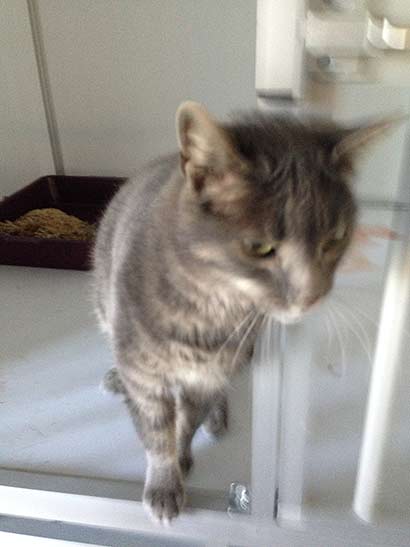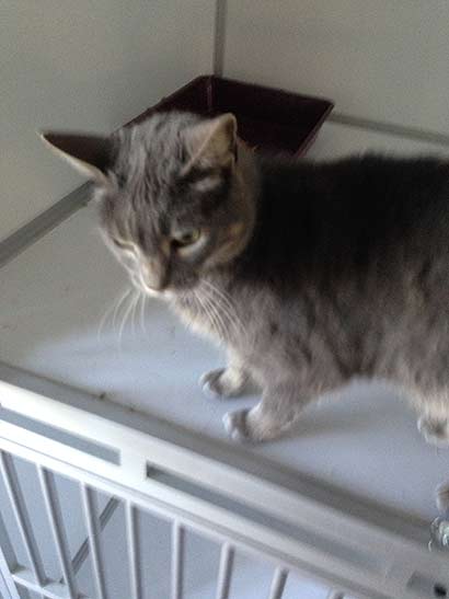 Die graue, noch namenlose Schönheit ist gerade mal 3 Jahre alt und leider ist sie FIV positiv getestet worden.