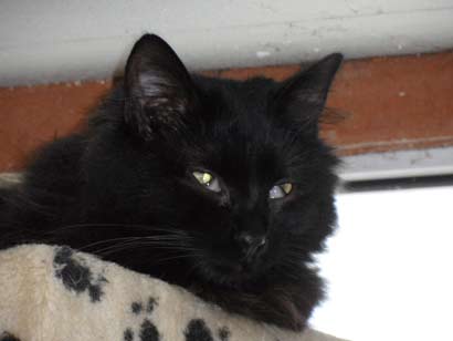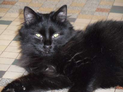 Hepson ist ca. 8 Monate alt und seit Babie im Tierheim. Er ist ein toller schwarzer Langhaarkater.