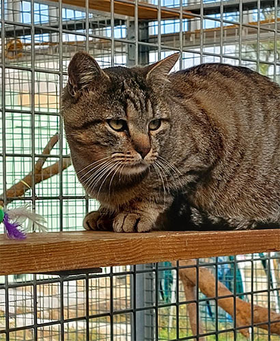Auch Hiroki stammt aus einer Beschlagnahmung. Der Tigerkater ist zurückhaltend, aber er wird immer mutiger, inzwischen lässt er sich auch schon streicheln.