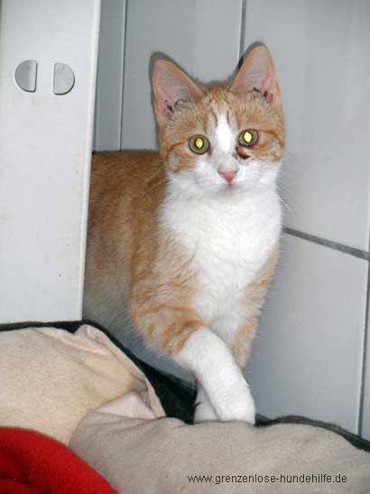 Ibis ist ein zierliches, wunderschönes Katzenmädchen. Dazu ist sie noch rot, eine echte Seltenheit unter Kätzinnen! Vielleicht weiß sie das sogar ;-), denn wann immer ich ihren Aufenthaltsort betrete, kommt sie sofort heran, schaut neugierig, was ich tue, und möchte sooo gern gestreichelt werden. Sie lässt sich auf den Arm nehmen und die hübsche Maus ist so dankbar, wenn sie dann beschmust wird.