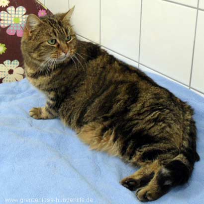 Er ist sehr gemütlich ihm scheint Futter und Streicheln zum Glücklichsein zu reichen. Er ist der ideale Familienkater, denn von kleinen Kindern lässt er sich sicher nicht aus der Ruhe bringen. Ein Garten wäre wünschenswert. |