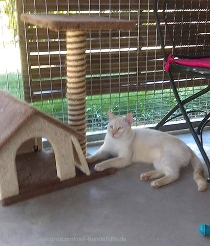 Er ist aktuell noch sehr unruhig und läuft den ganzen Tag wie ein Tiger im Katzengehege auf und ab. Er lässt sich aber auch gerne streicheln und genießt es abgelenkt zu werden.