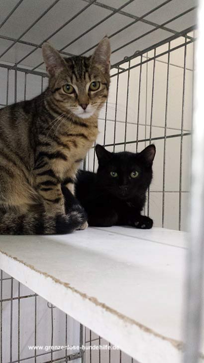 Jazz und Tchip sind bereits seit Anfang Juni im Tierheim und benötigen dringend ein Zuhause. Sie sind sehr schüchtern und mit Menschen noch nicht gut sozialisiert.