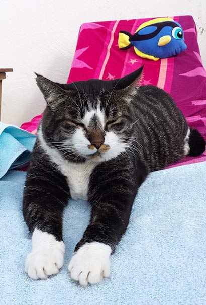 | Kiri genießt den Sommer auf der Liege und ist auch sonst sehr entspannt. |