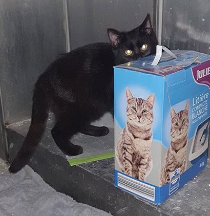 Die vier Katzenkinder wurden in einem zugeklebten Katzenfutterkarton einfach still und leise vor dem Tor des Tierschutzhofes abgelegt.
