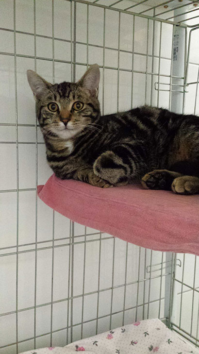 Lino das dunkle Tigerle wartet noch. Er wird nur in Wohnungshaltung zu gleichaltrigen Katzen vermittelt. |