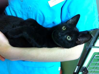 ...... verletzt umherirrend wurde er gefunden und von Menschen, die sofort gehandelt haben, im Tierheim abgegeben. Das war sein Glück, wir möchten uns erst gar nicht vorstellen, was passiert wäre, hätte man ihn seinem Schicksal überlassen. Noch am gleichen Tag wurden alle Hebel in Bewegung gesetzt um dem kleinen, schwarzen Etwas zu helfen und ihn zu einem Tierarzt zu bringen.