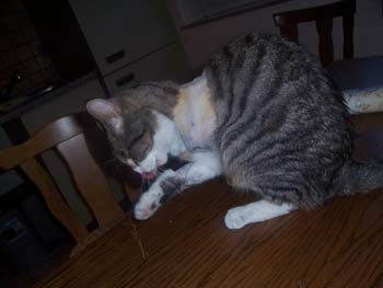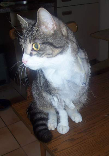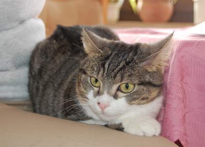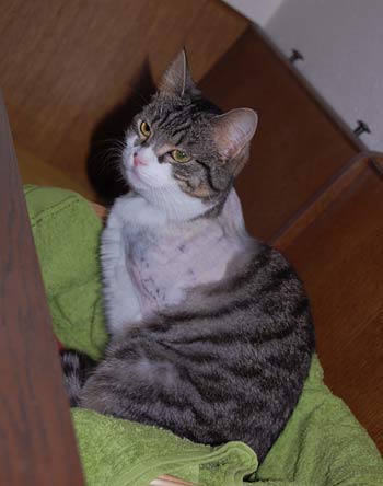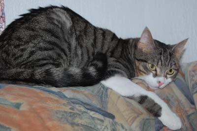 der Vorderpfote .Lucia sitzt zwar gerne mal