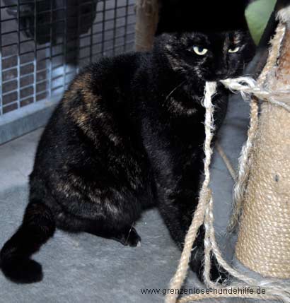Die Schnur hat es ihr angetan und sie jagt richtig ausgelassen den Enden nach. Leider ist es schon wieder viel zu dunkel, und ich muß Lucie mit dem Versprechen zurücklassen, das nächste Mal schöne! Bilder von ihr zu machen. Anmerkung: insgeheim hoffe ich natürlich, dass die süße Maus bis zum nächsten Mal nicht mehr im Tierheim wartet, sondern vielleicht bei Euch schon glücklich und unbekümmert spielen kann? |
