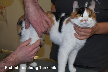 Ihr Becken war verschoben und sie konnte mit der rechte hinteren Pfote nicht auftreten (siehe Video).
