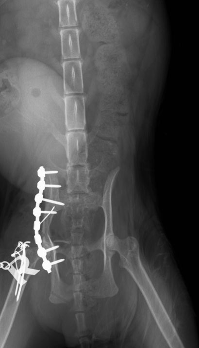 Da die Frakturen schon mehrere Tage alt waren, musste Lucky schnellstmöglich operiert und ihr Becken mit Platten und Schrauben wieder fixiert werden.